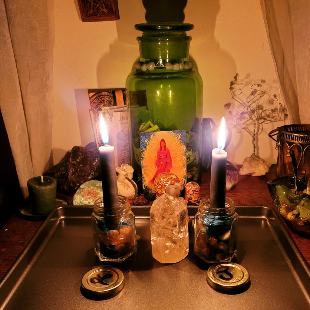 This process is how I go about setting up my own personal space where I live. It makes a huge difference because it really works to create a positive environment and invites positive things into your life. I can also really tell when things are not set up right as things tend to shift within my life. Another benefit is that when I have it in place, I do not have to cleanse my space as much, it keeps me in the habit of keeping things picked up and in order, and makes it a lot easier to pull up a circle whenever I choose.